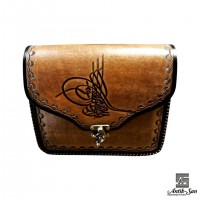 Osmanlı Tuğrası İşlemeli Deri Çanta Üzerinde Osmanlı Tuğrası bulunan el yapımı %100 kösele deri çanta. (Büyük Boy)..
